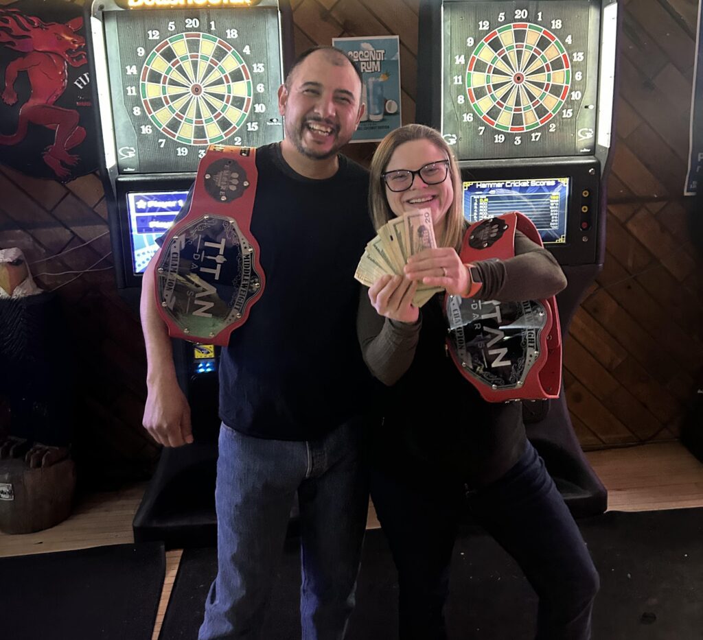 We are the Inland Northwest's premier soft tip dart league. Offering leagues for every skill level from Novice to Master. We are proud to play exclusively on Arachnid Galaxy 2 and Galaxy 3 dartboards. This allows us to offer both traveling and remote leagues. We are a member of the National Dart Association and as such our players are sanctioned to compete in NDA events. This is just one of many things we offer our players. Each season teams and players are eligible to receive cash and prizes through regular season league wins, league championships or at our end of the season regional events. In addition we also offer individual awards for top shooter, Clash of the Titans, or Titan Masters.